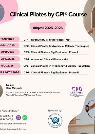 Clinical Pilates Institute® is pleased to announce the launch of the new cycle of Clinical Pilates by CPI® training seminars in Athens for the 2025–2026 academic period.