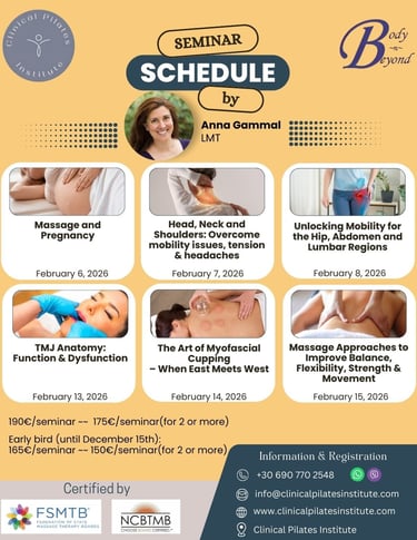 📌 The seminar will take place at Clinical Pilates Institute®, 7 Agias Glykérias St., 11147 Galatsi, Athens.