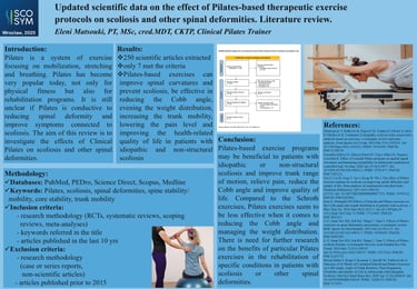 Updated scientific data on the effect of Pilates-based therapeutic exercise protocols on scoliosis and other spinal deformities. Literature review, Matsouki E., 6th International Scoliosis Symposium (PUBLISHED ANNOUNCEMENT)