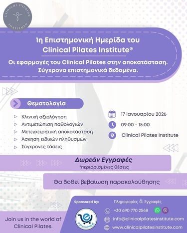 Join us as we explore how Clinical Pilates contributes to rehabilitation, functional re-education and exercise for special populations through evidence-based presentations.