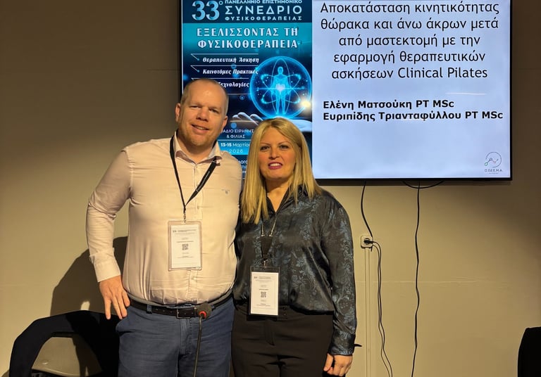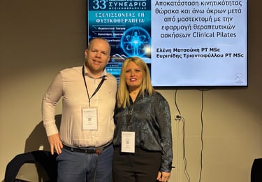 Εργαστήριο «Αποκατάσταση κινητικότητας θώρακα και άνω άκρων μετά από μαστεκτομή με την εφαρμογή θεραπευτικών ασκήσεων Clinical Pilates». Ματσούκη Ελένη, Τριανταφύλλου Ευριπίδης.