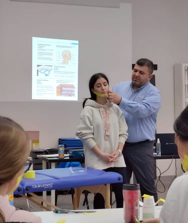 Οι συμμετέχοντες θα εφαρμόσουν τις τεχνικές Kinesio Tape®, για το πρόσωπο, την «Αναπνοή» και τη «Διαχείριση Πέψης» και τη στοματική κινητική λειτουργία (π.χ. κλείσιμο χειλιών και ανύψωση της γνάθου).